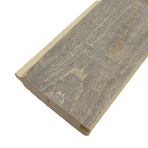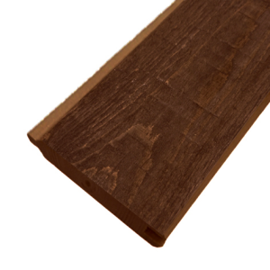 This Dakota Rustic tongue and groove is a brown wood, artificially aged to look like barn wood with patina on two faces that are reversible, with one rough face and one wire-brushed face.