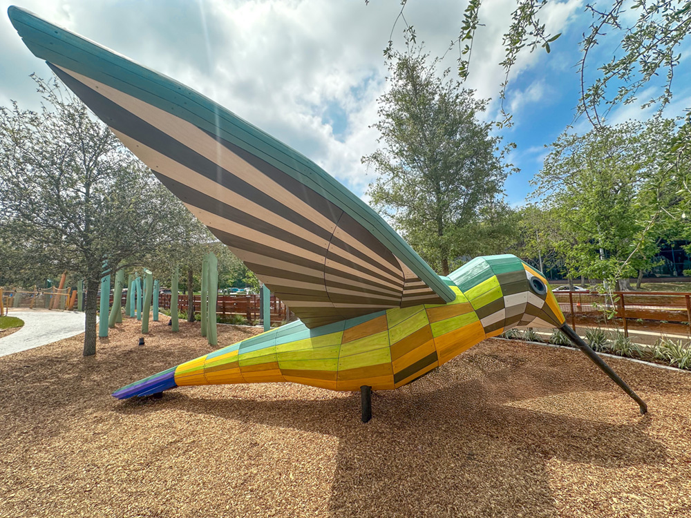 a Houston-based fabrication company known for blending steel and wood into sculptural, functional features. Their intricate installations—like the eye-catching hummingbird climbing structure—bring an artistic edge to the park’s recreational space and celebrate craftsmanship in every detail.