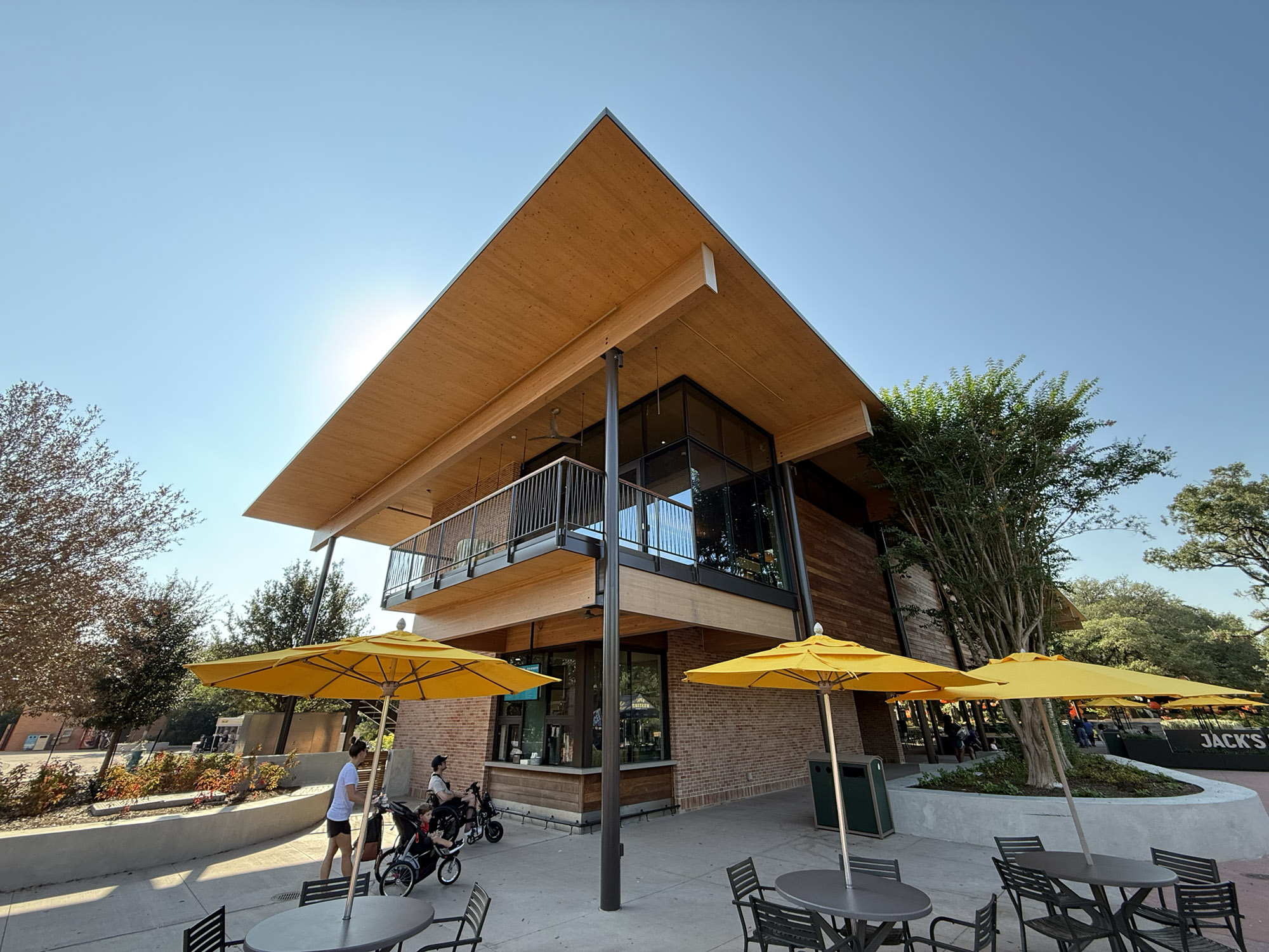 Mason’s Mill supplied Thermory Benchmark Ash for the exterior of the café, and interior bathroom enclosures. This use of materials reinforces the café’s nature-connected feel, while offering the performance needed for Houston’s climate and high foot traffic.