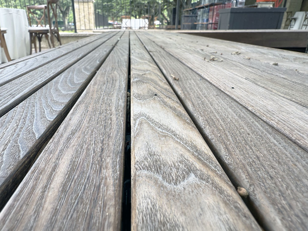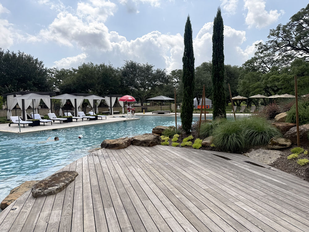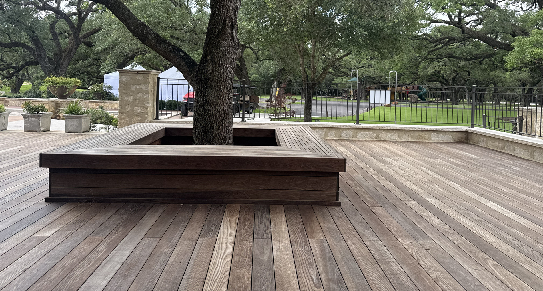 When form meets function in a setting as serene as Houston Oaks Country Club, material choice matters. For this standout deck and pool island project, Thermory Ash was selected for its durability, natural beauty, and eco-conscious profile. Modified using only heat and steam—without the use of chemicals—Thermory is known for its stability and resistance to the elements, making it an ideal choice for high-traffic outdoor spaces.
