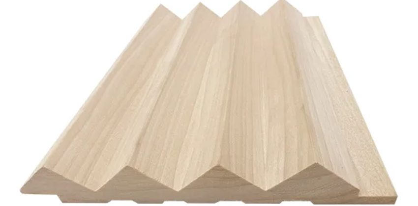 Slatwall cladding profile for custom milling to specification in various species.